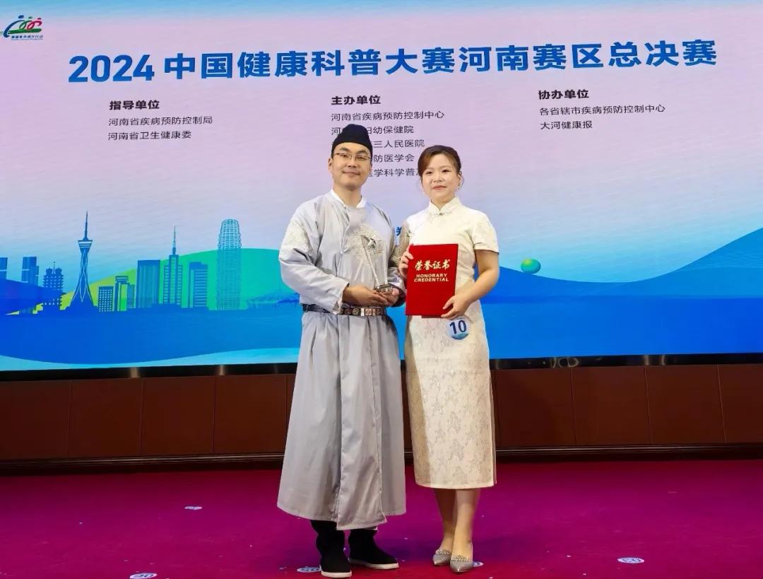10月28—29日,2024中國(guó)健康科普大賽河南賽區(qū)總決賽在鄭州圓滿落下帷幕。大賽圍繞“傳染病、慢性病、婦幼健康、五大衛(wèi)生”四大主題展開激烈角逐,歷經(jīng)層層選拔,64部佳作晉級(jí)健康科普總決賽,其中在“五大衛(wèi)生及其他”專場(chǎng)中,漯河市中醫(yī)院李本心、包亞沖攜作品《穿越千年話藥膳》榮獲二等獎(jiǎng),白冰及作品《花間語(yǔ)茶》榮獲三等獎(jiǎng)。