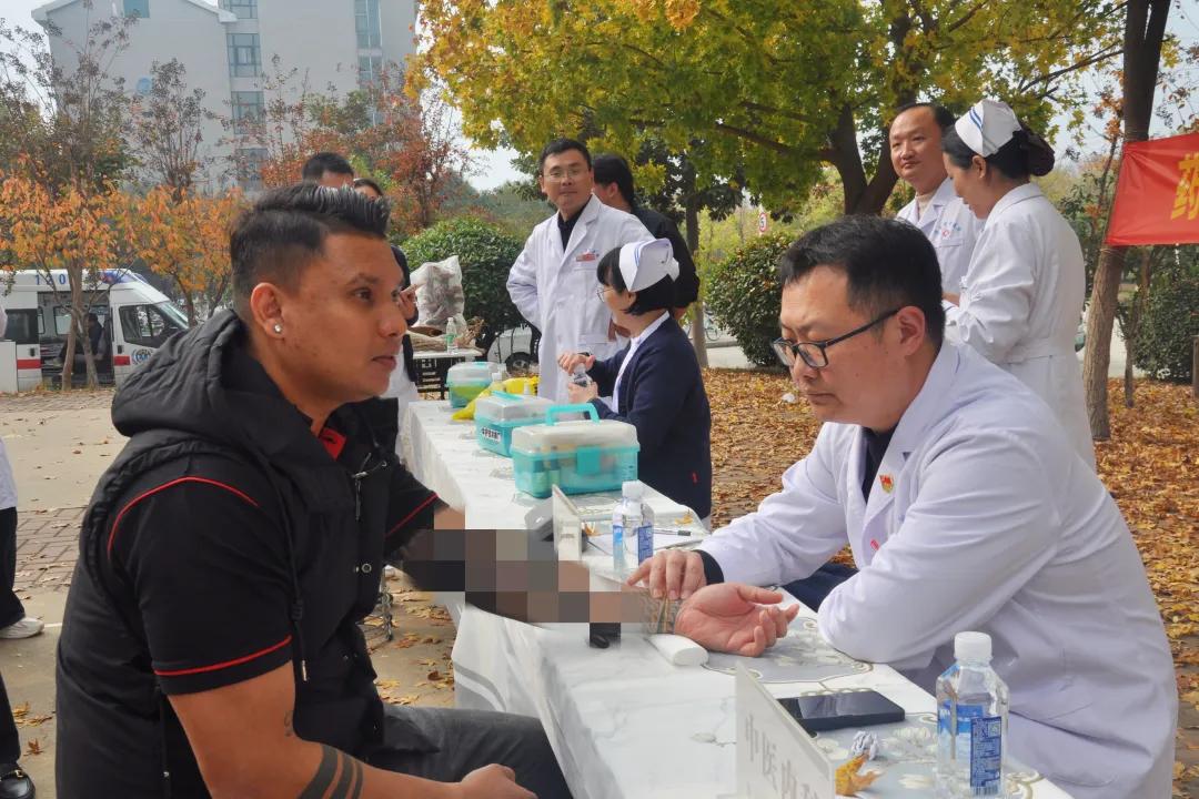 中醫(yī)義診區(qū)域,副主任中醫(yī)師彭壯、主治中醫(yī)師李佳攜手坐診,學(xué)生們排起了長(zhǎng)長(zhǎng)的隊(duì)伍前來(lái)體驗(yàn)中醫(yī)號(hào)脈等特色診療服務(wù)。在漯河醫(yī)專(zhuān)學(xué)習(xí)的數(shù)名外國(guó)留學(xué)生深深熱愛(ài)著中華傳統(tǒng)文化,對(duì)中醫(yī)藥知識(shí)有著濃厚的興趣,在對(duì)外交流處王瑾老師的陪同下,紛紛參與體驗(yàn)。市中醫(yī)院彭壯醫(yī)生為斯里蘭卡籍留學(xué)生仝深平中醫(yī)把脈問(wèn)診,針對(duì)其脈象,給予合理的飲食建議和健康生活指導(dǎo),受到外國(guó)留學(xué)生們的點(diǎn)贊!