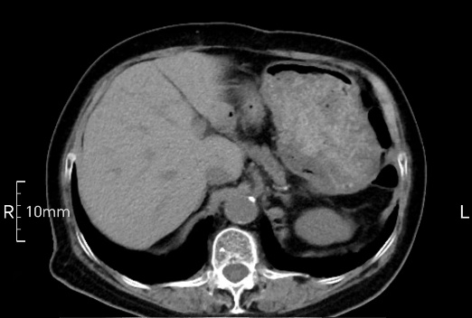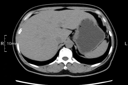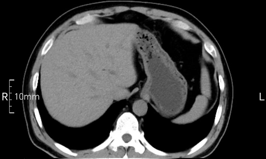 沒禁食,胃內(nèi)全是食物,導(dǎo)致胃壁顯示不清。