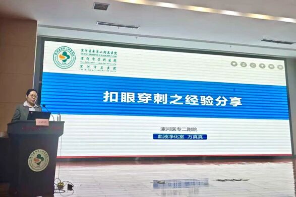 漯河醫(yī)專二附院血液凈化室骨干萬真真以《扣眼穿刺之經(jīng)驗分享》為題,結(jié)合實際案例,細致講解了扣眼穿刺技術(shù)的操作要點、隧道建立的技巧、日常維護的注意事項以及常見問題,為降低患者穿刺痛苦提供了寶貴的經(jīng)驗。由郾城區(qū)中醫(yī)院血液凈化室護士長楚方圓與召陵區(qū)中醫(yī)院血液凈化室護士長曹冬曉主持會議。