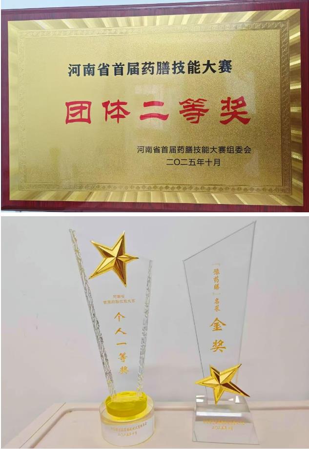 2025 年10月22日至24日,河南省首屆藥膳技能大賽在南陽市醫(yī)圣文化園隆重舉辦。在這場高規(guī)格賽事中,漯河市中醫(yī)院參賽隊伍憑借深厚的中醫(yī)藥底蘊與精湛的烹飪技藝嶄露頭角,取得優(yōu)異成績,摘得數(shù)座獎杯,成為賽事中的最亮眼存在。藥學(xué)部白冰制作的金湯萸杞護(hù)肝盞憑借獨特的創(chuàng)意及絕佳口感與科學(xué)的養(yǎng)生功效,脫穎而出,榮獲 “豫藥膳名菜” 金獎第一名,成為本次大賽的焦點之作。