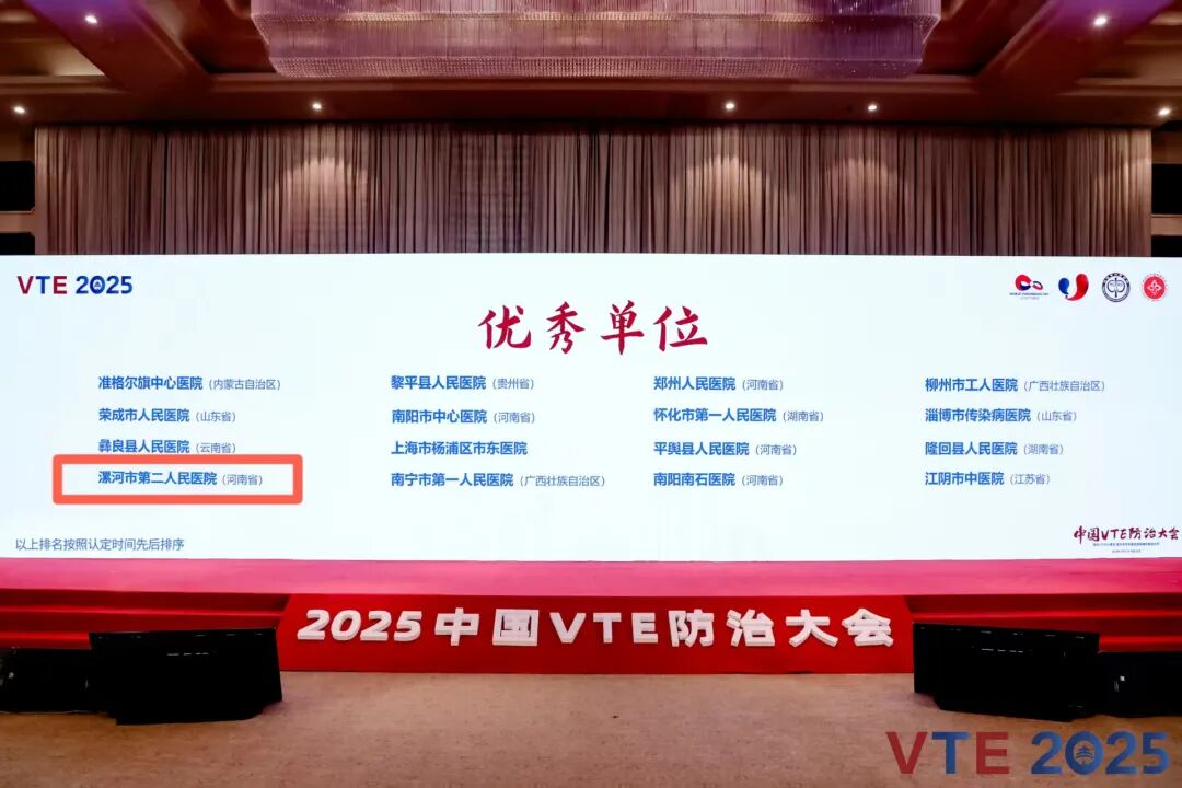 2025年10月31日,由全國肺栓塞和深靜脈血栓形成防治能力建設(shè)項目辦公室、協(xié)同醫(yī)療健康基金會聯(lián)合主辦的“2025年中國VTE防治大會”在北京成功舉行。會上,漯河市第二人民醫(yī)院憑借扎實的防治成效與規(guī)范的管理體系,被授予“全國肺栓塞和深靜脈血栓形成防治能力建設(shè)項目優(yōu)秀單位”稱號。副院長張曉東代表醫(yī)院參會并接受授牌,這也是當前漯河市域內(nèi)唯一通過此項國家評審的醫(yī)療機構(gòu)。