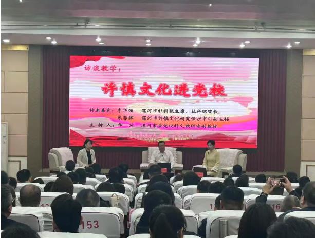 為深入學(xué)習(xí)習(xí)近平文化思想,貫徹落實(shí)中央和省委、市委關(guān)于文化建設(shè)的工作部署,推動(dòng)我市“四大本土文化”創(chuàng)造性轉(zhuǎn)化、創(chuàng)新性發(fā)展,11月6日上午,市社科聯(lián)主席、社科院院長李華強(qiáng),市許慎文化研究保護(hù)中心副主任朱菲輝受邀走進(jìn)黨校秋季學(xué)期第二期主體班課堂,開展了“許慎文化進(jìn)黨校”專題訪談教學(xué),市委黨??萍嘉幕萄惺腋敝魅?、副教授華冰主持。