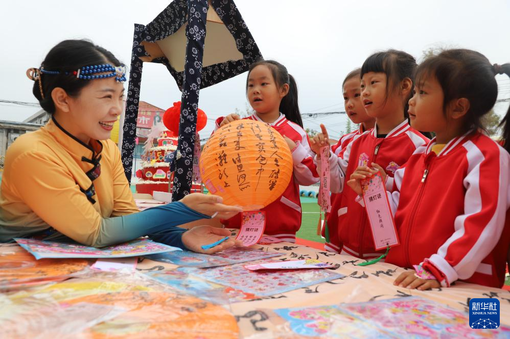 9月28日,在山東省濱州市沾化區(qū)馮家鎮(zhèn)李家幼兒園,孩子們在“拾趣品中秋 童心迎國慶”活動(dòng)上猜燈謎。